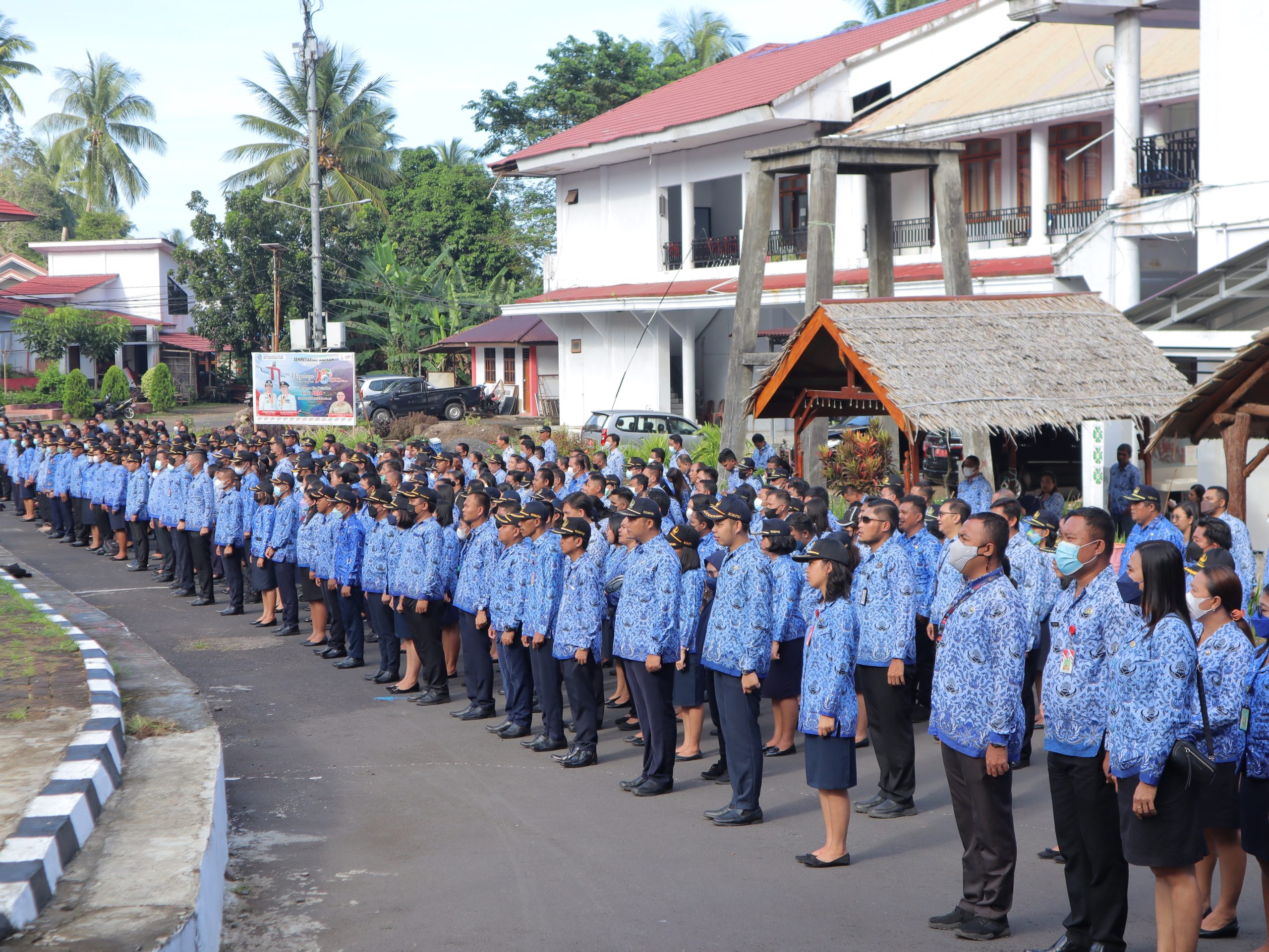Apel KORPRI yang diikuti oleh seluruh Aparatur Sipil Negara (ASN) dijajaran Pemerintah Kabupaten Kepulauan Sitaro, dilaksanakan di Kompleks Tugu Pala Kantor Bupati Kepulauan Sitaro, Jumat 17 Juni 2022.